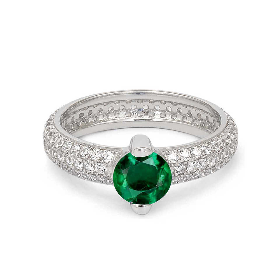 1 Carat Solitaire Ornate Green Emerald Boho-Romantic Silver Ring Rhodium Plating Fine for Women IGI Certified Platinum Garnet