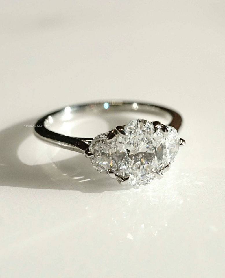 1 Ct Crushed Ice Oval Moissanite Ring Elongated Oval Cut Engagement Ring for Women