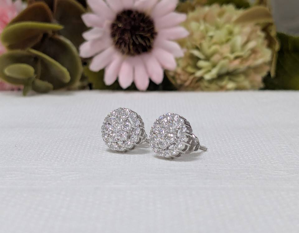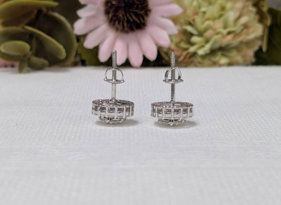 1 Ct Round Cut Lab Grown Diamond Cluster wedding Earrings, Diamond Flower Shaped Screw Back Earrings, Solid 10K White Gold