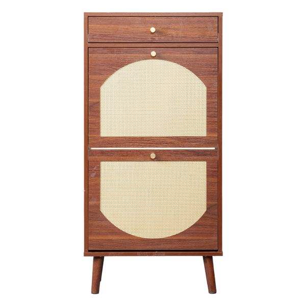 1-Drawer Rattan Shoe Cabinet with 2 Flip Top Drawers 54*24*110cm Particleboard Brown Shoe Rack