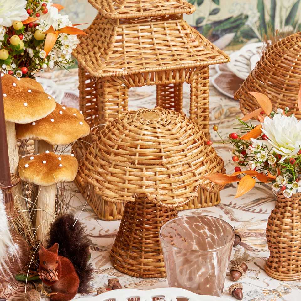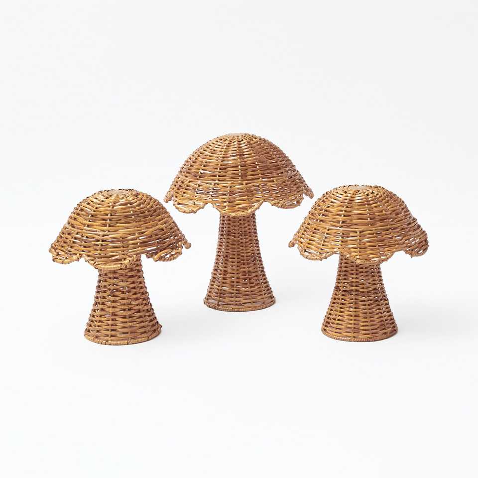 Set Includes:x1 Large Natural Rattan Mushroom,x2 Small Natural Rattan Mushroom