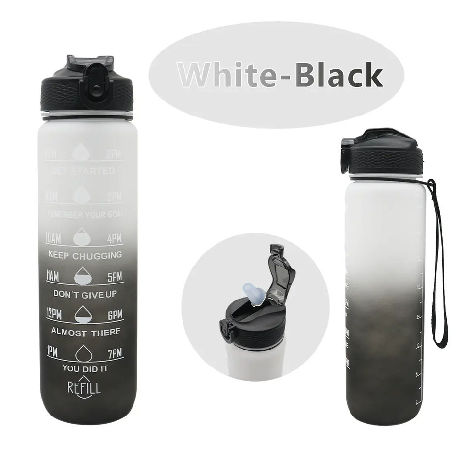 1 Liter Motivational BPA Free Eco-Friendly Tritan Water Bottles Straw Gym Fitness Outdoor Camping Direct Drinking Time Marker
