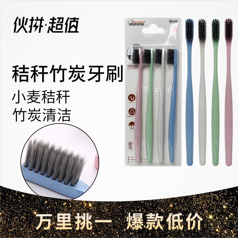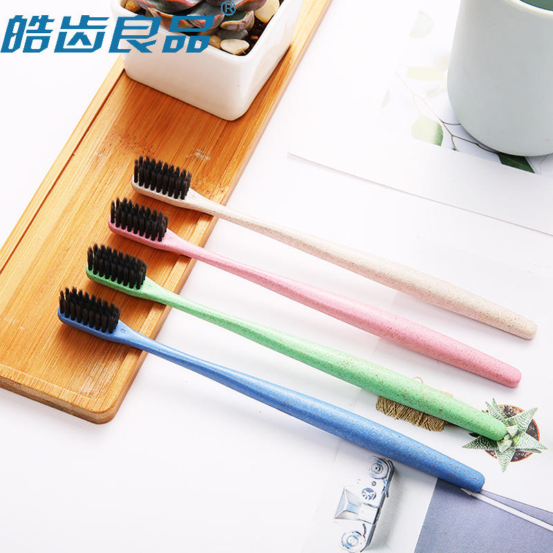 1-Pack 4-Week Wheat Straw Adult Toothbrushes with Small-Headed for Bamboo Charcoal Soft Bristles PP Handle