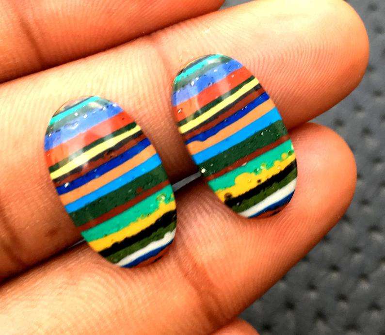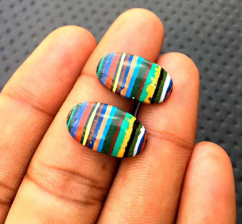 1 Pair Natural Rainbow Calsilica Gemstone Smooth Oval Shape Cabochon Top Quality Making Colorful Jewelry