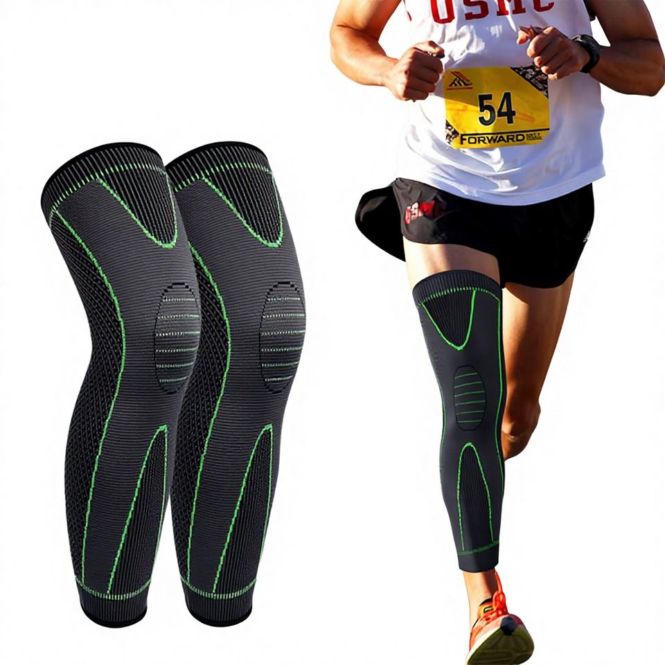 1 Pcs Compression Knee Stabilizer Support Lengthen Stripe Sport Sleeve Protector Elastic Thick Advanced Protection Nylon Long
