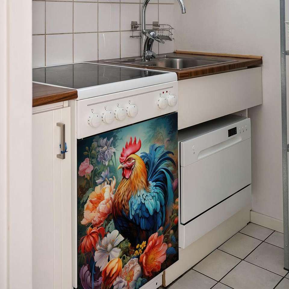 1 Pcs Easy Clean 2D Flat Dishwasher Magnet Cover Rooster Flowers Refrigerator Door Sticker Decorative Appliance Panel Sticker