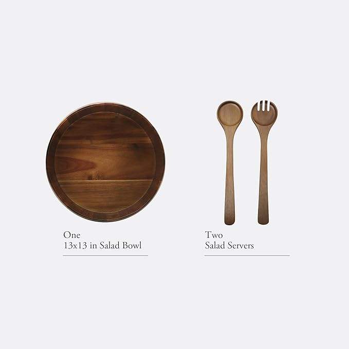 1 Piece Large 13" Acacia Wood Eco-Friendly Customizable Salad Serving Bowl Set W/ 2 Serving Tools