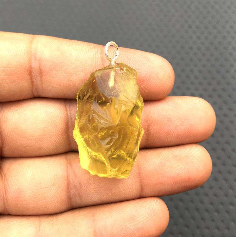 1 Pieces Natural Rough Pendant Lemon Quartz Gemstone 92.5 Sterling Silver Women Jewelry Men Gift Trendy Stone