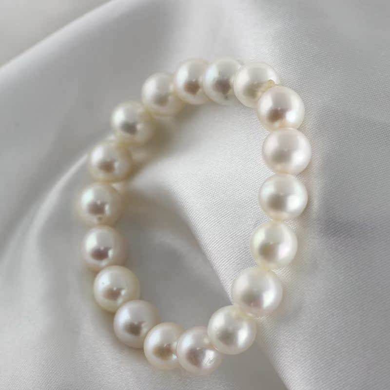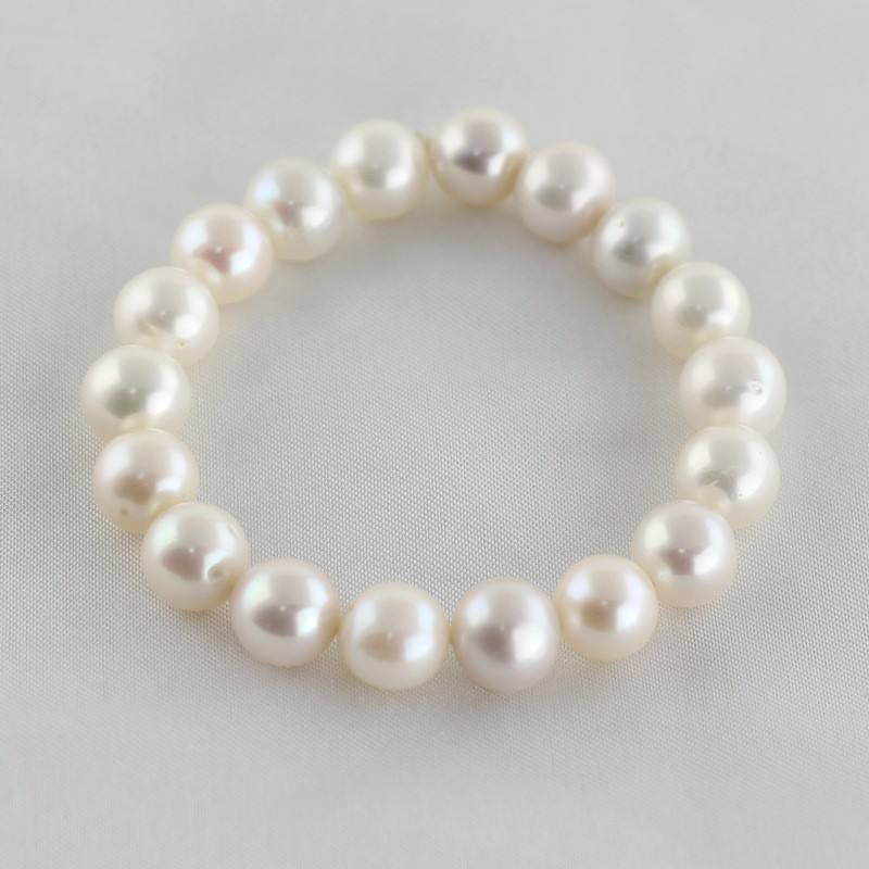 10-11mm Large Round Freshwater Pearl Bracelet Easy Wearing Self with Small Flaws White Elastic Band