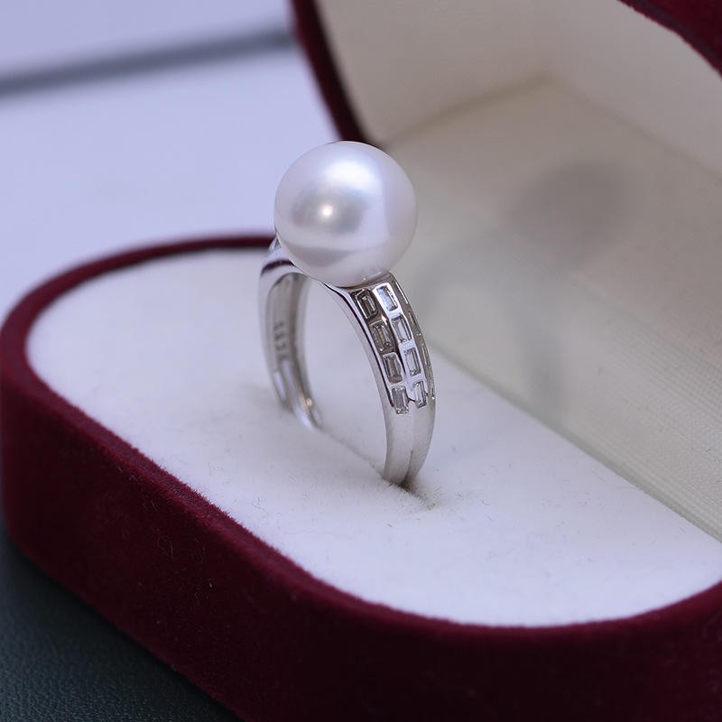 10-11mm White Freshwater Pearl Ring for Female S925 Silver Simple Opening Adjustable with Strong Light and Fine Flaws