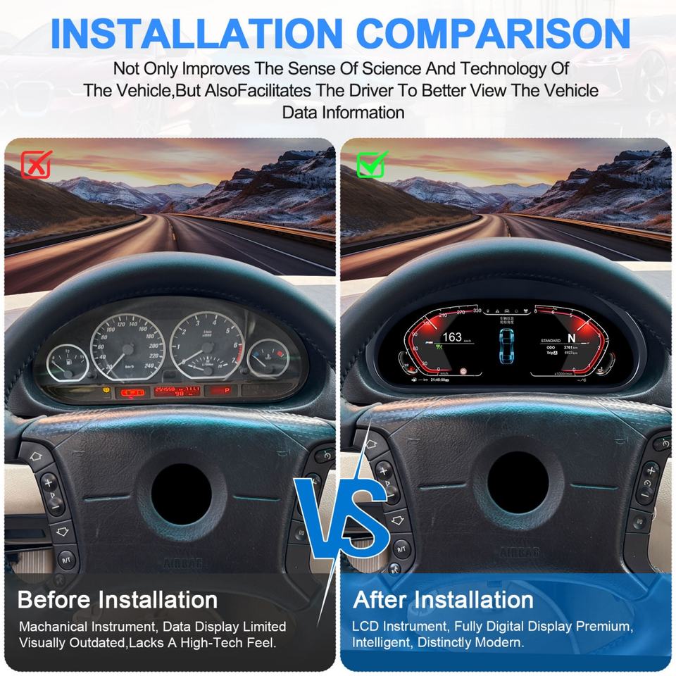 10.25 Inch Digital Instrument Cluster Upgrade for BMW E46 3 Series LCD Dashboard with Carplay Speedometer Tachometer