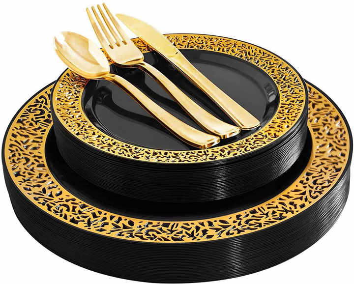 gold plastic dinner plate set