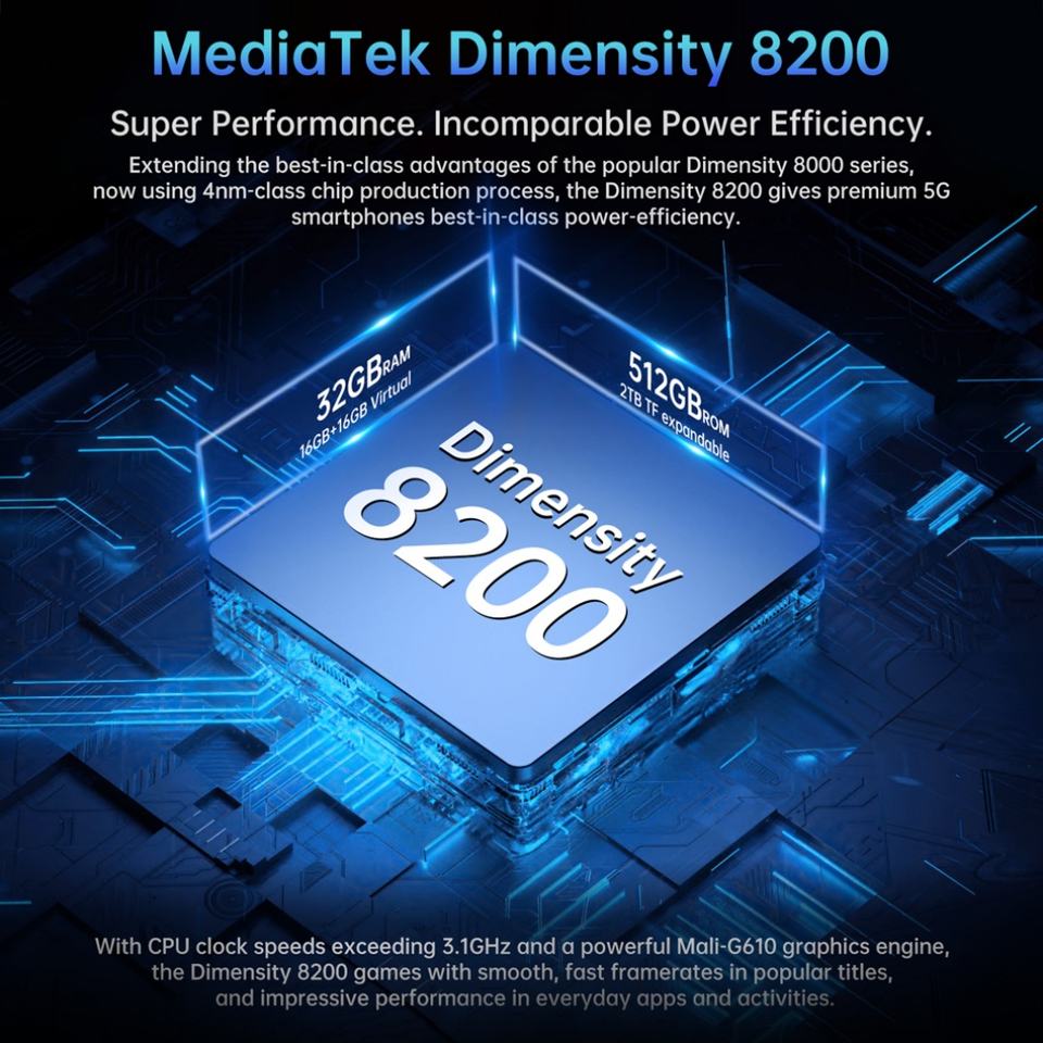 CPU::MediaTek Dimensity 8200 5G octa-core 3.1GHz