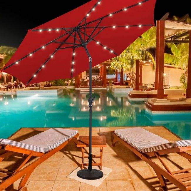 10 Feet Patio Solar Umbrella with Crank and LED Lights for Outdoor Entertaining