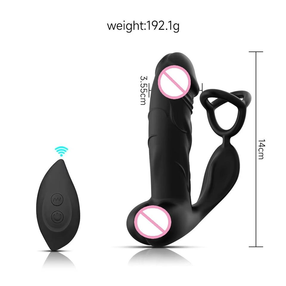 10 Frequency Wireless Remote Control Sperm-Locking Three Ring Anal Plug Simulated Vibrating Prostate Massager