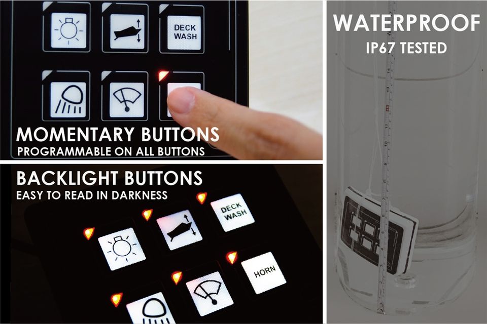 Default Latching, programmable Momentary on all buttons