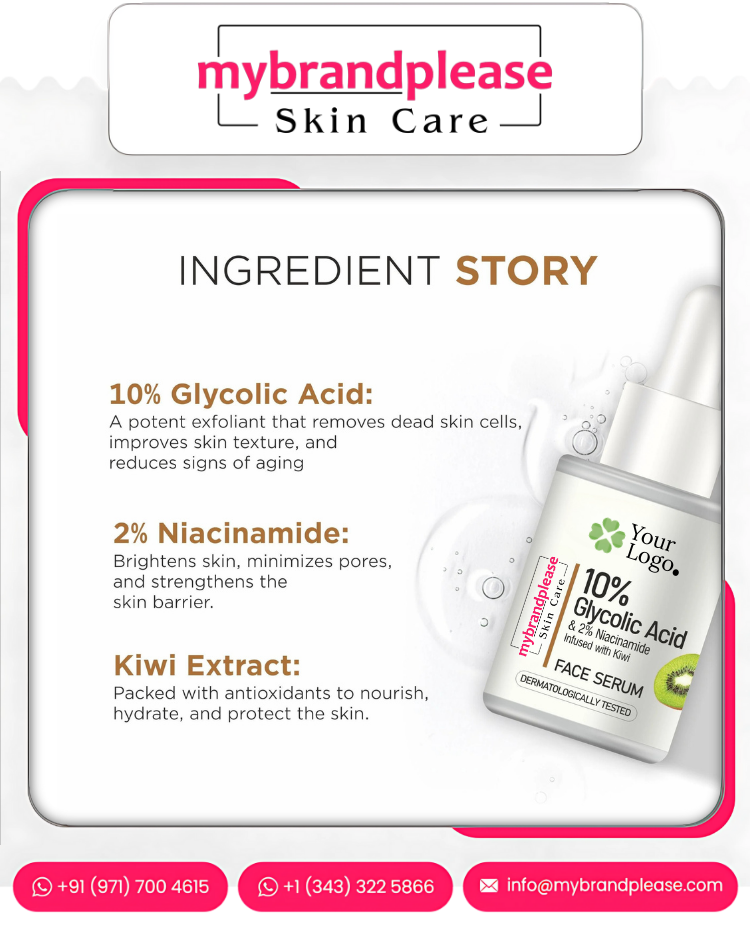 Glycolic Acid, Niacinamide Extract, Kiwi Extract