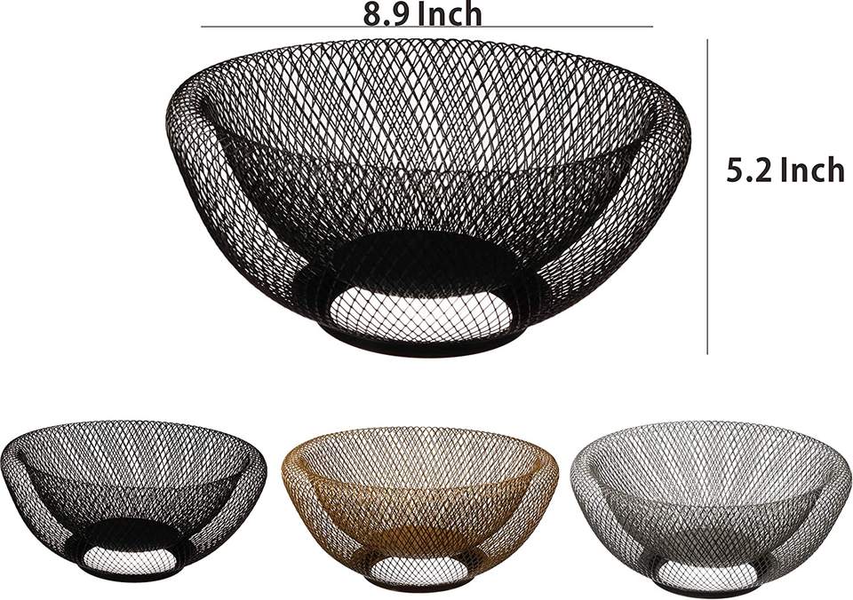 10-Inch Blush Metal Mesh Fruit Bowl Decorative Kitchen Dining Room Office Use Stand Basket Holder for Candy Food Bags Tools