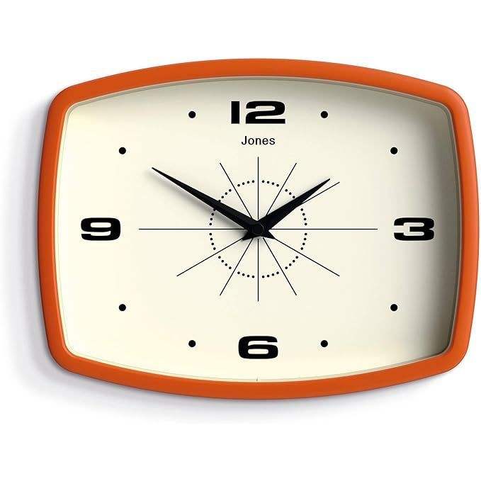 10 Inch Movie Retro Rectangular Wall Clock Cool Mid-Century Designer Look Orange for Kitchen Living Room Office