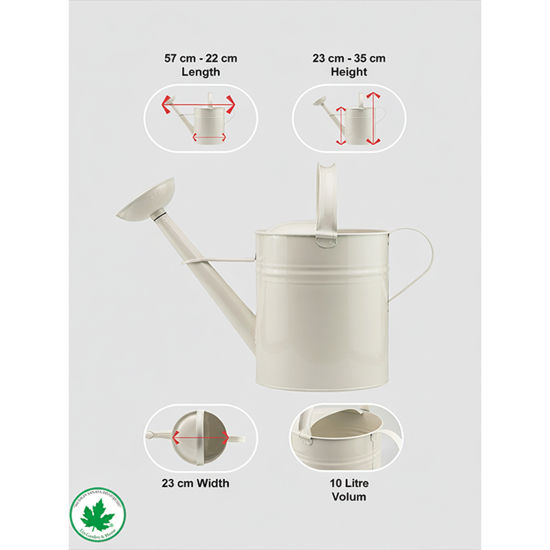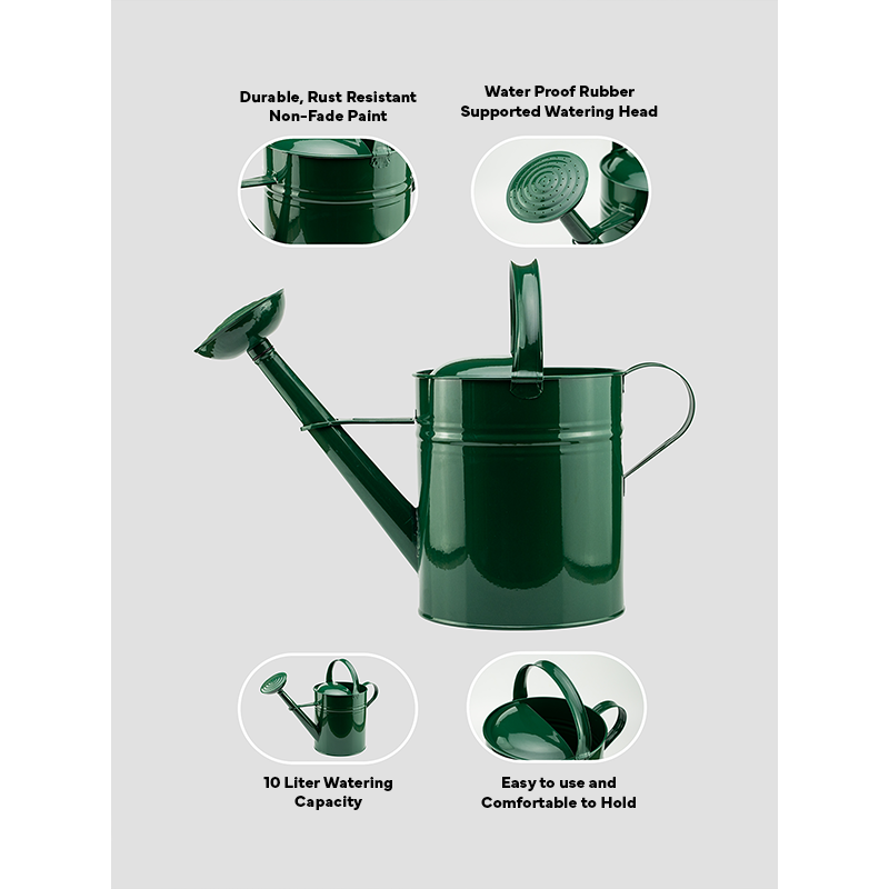 10-Liter Metal Watering Can with Removable Spout & Reinforced Edges Large Cylindrical Garden Tool