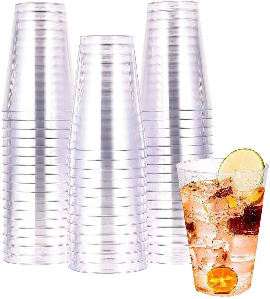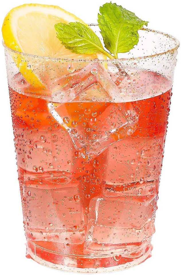10 OZ Clear Plastic Cups Tumblers Rose Gold Rimmed Cups Disposable Cup for Party and Restaurant