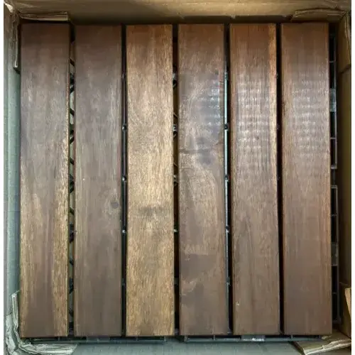 10-Pack Acacia Wood Interlocking Floor Tile 12x12\" Striped Pattern 18mm Click-Lock for Indoor Outdoor Rustic Modern