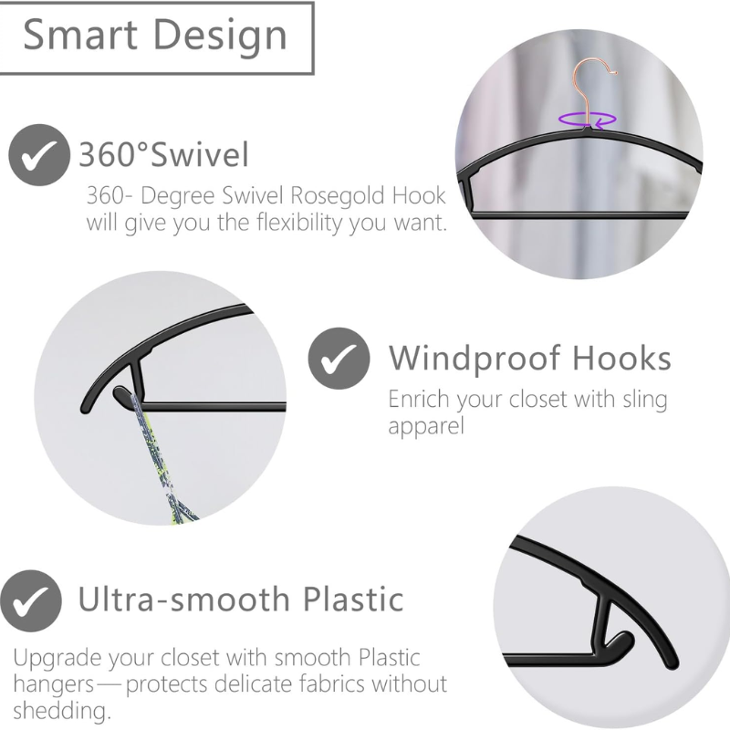 10 Pack Plastic Clothes Hangers Black Non Slip Bump Free Shirt Dress Coat Hangers with 360 Swivel Hooks for Closet Storage
