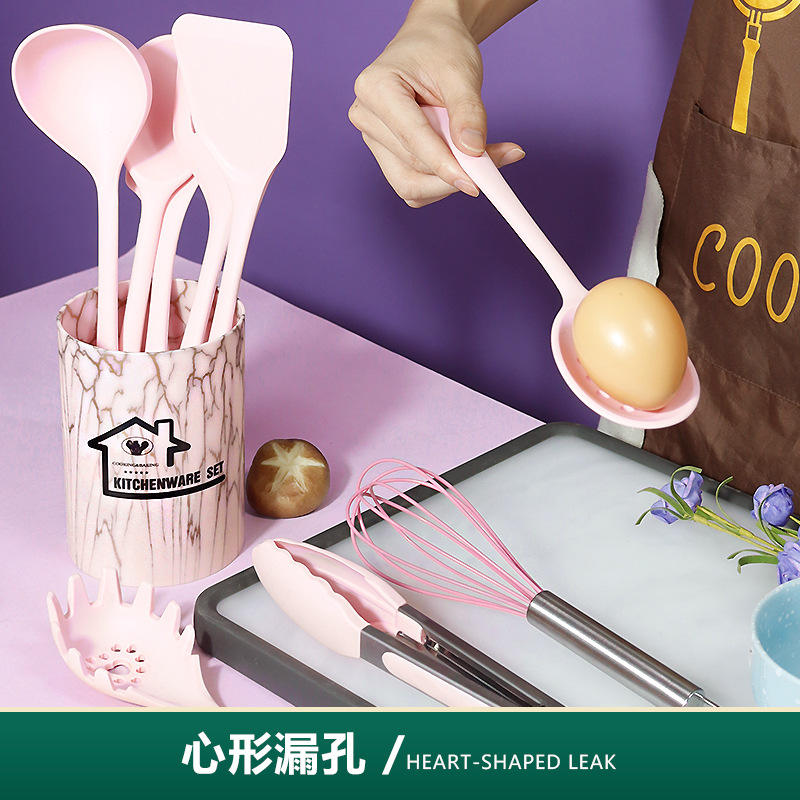10-Piece Home Kitchen Non-Stick Pan Silicone Spatula and Soup Spoon Set Marble Food Grade Dishwasher Safe Wholesale