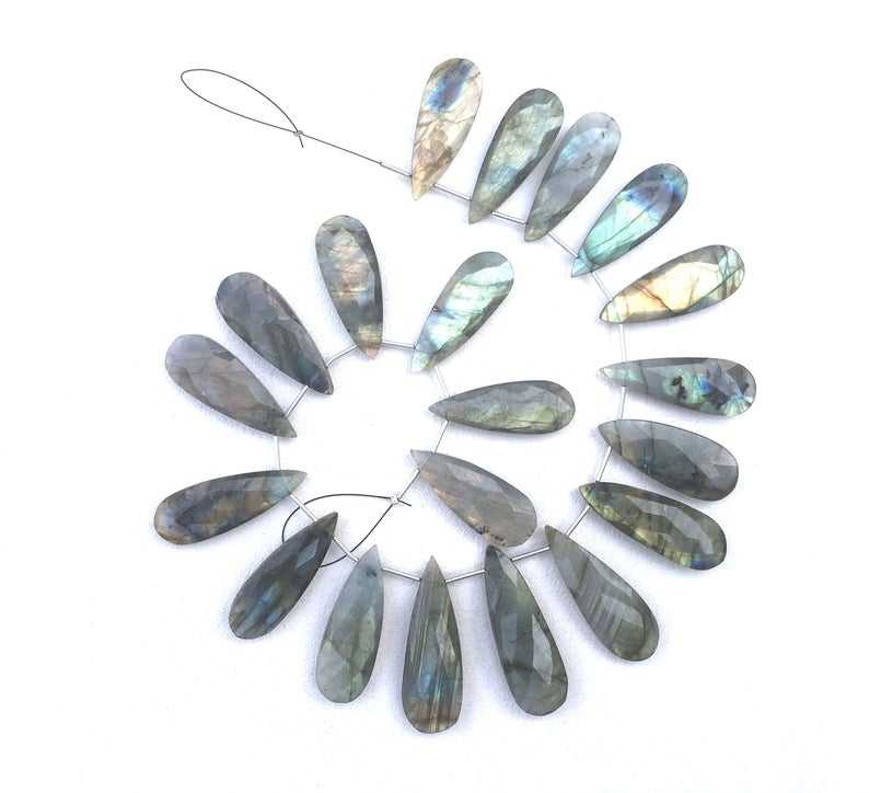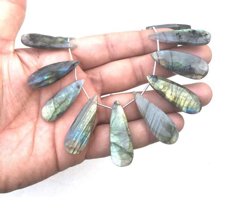 10 Pieces Faceted Pear Shape Natural Labradorite Gemstone Briolette Beads Blue Flash Wholesale Manufacturer Genuine High Quality