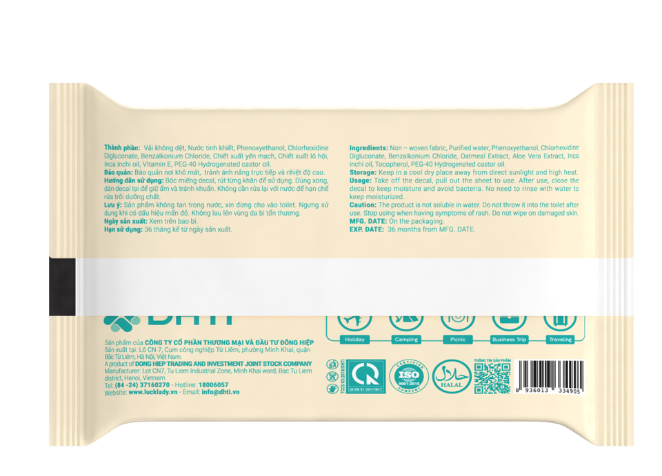 10 Pieces Fragrance-Free Lady Wet Wipes High Quality Mini Feminine Top Pack of 6 Goi Trong for Skin Care Bags of Luck