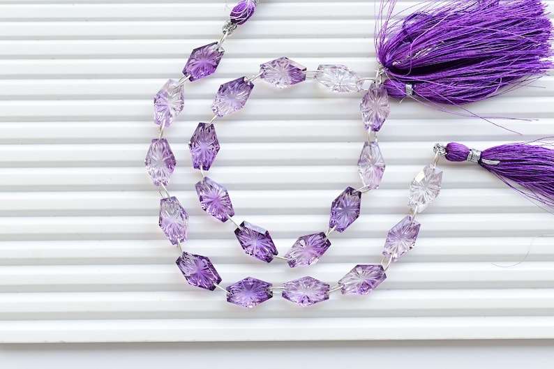 10 Pieces High AA+ Grade Bi-Color Purple Amethyst Hexagon Radiant Back Carved Natural Stone Double Drill Strand Jewelry 15x10x5