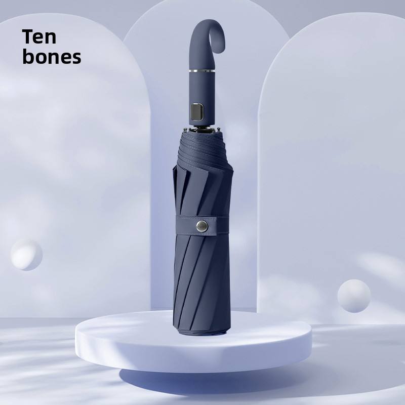 10-Rib Fully Automatic One-Button Open Close Hook Umbrella 190T Nylon 105cm Black Coating UV Protection Printed Business Gift
