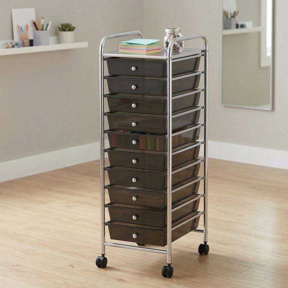 10-Tier Multifunctional Home Storage Drawer Modern Organization Kitchen Bathroom Living Room Steel Iron Plastic Tool Storage