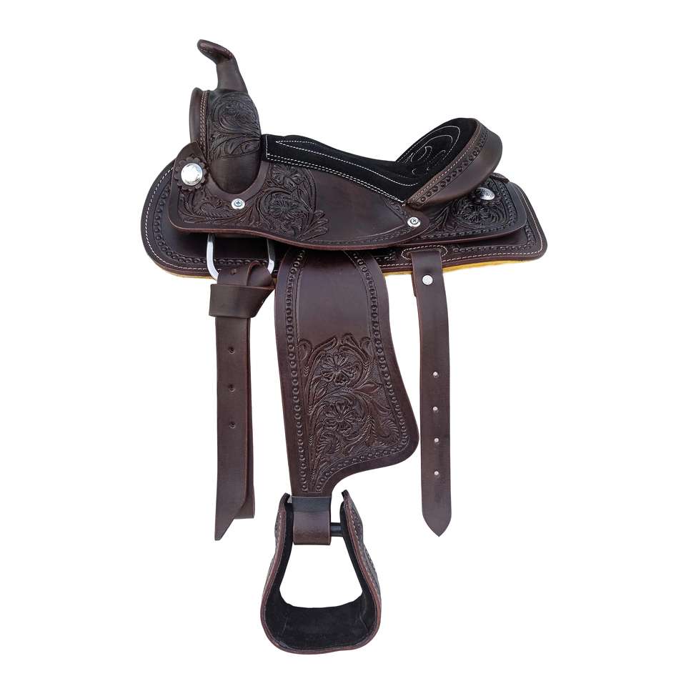 10" Customizable Durable Western Kids 100% Buffalo Leather Saddle Hand-carved Floral Tooling Soft Padded Seat Children Riding