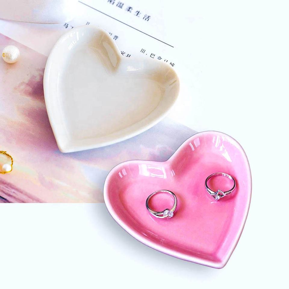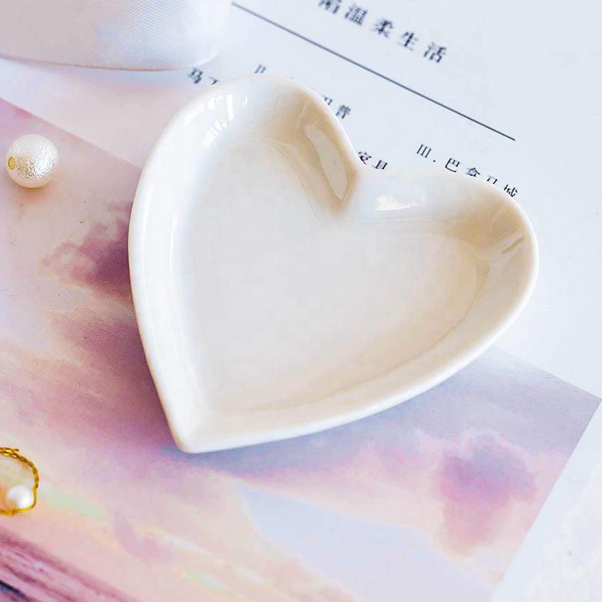 10 X 10 CM White Heart Ceramic Simple Modern Jewelry Tray for Home Decoration and Jewelry Display