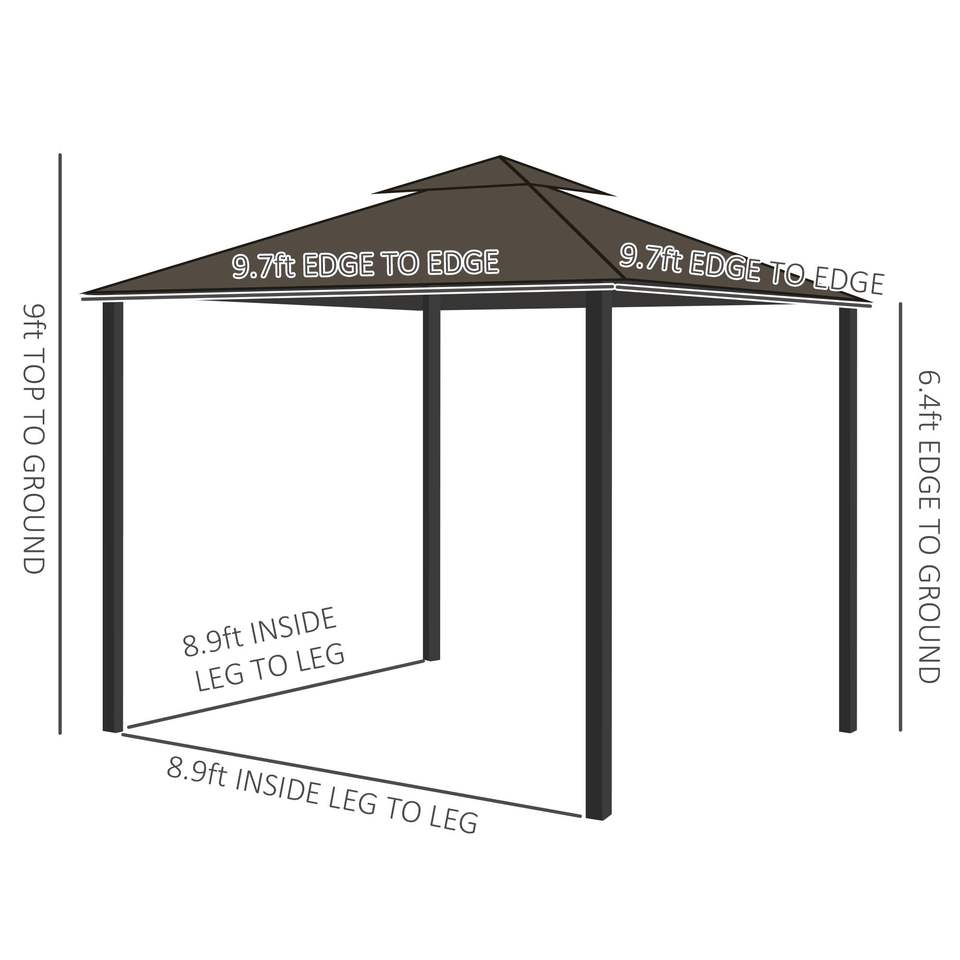 10' X 10' Patio Aluminum Frame Gazebo Double Roof Outdoor Canopy Shelter Netting Curtains for Garden Backyard Deck for Coffee