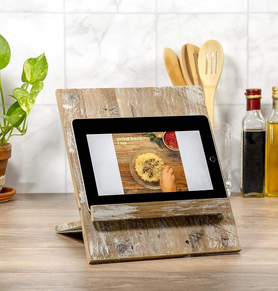 10 X 12 Wooden Cookbook Holder & Reading Stand for Open & Closed Books Brushed Brown
