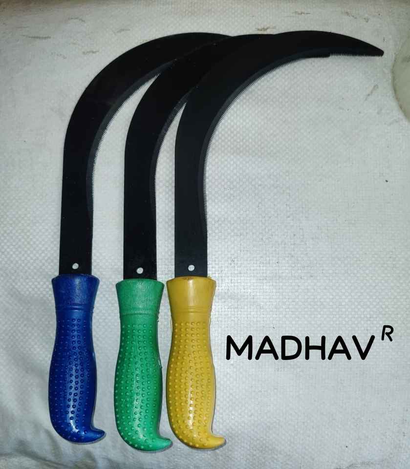 Shree Devam Agrico #10 Most Popular Wood & Plastic Handle Sickle 13" Blade 15.5cm Polished Finish 150gm Weight-Red/Blue/Brown