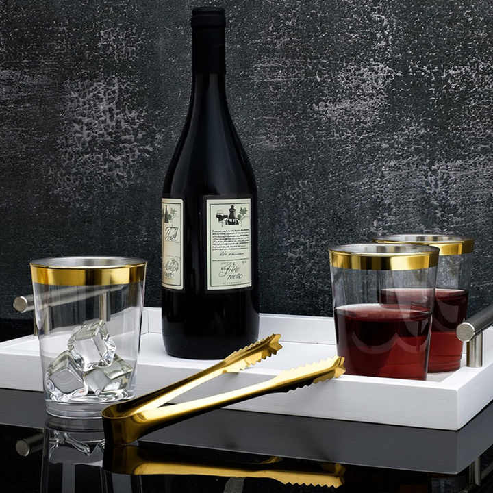 10 oz High Quality Clear Gold Rim Wedding Tumblers Disposable Transparent Hard Plastic Cups for Birthday Party Wedding