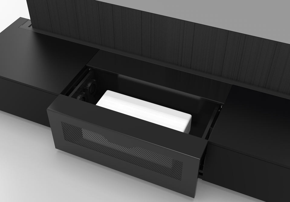 100/120 Inch Intelligent Laser TV Projector Screen 16:9 Format Motorized Floor Rising UST Electric Cabinet Screen TV Cabinet