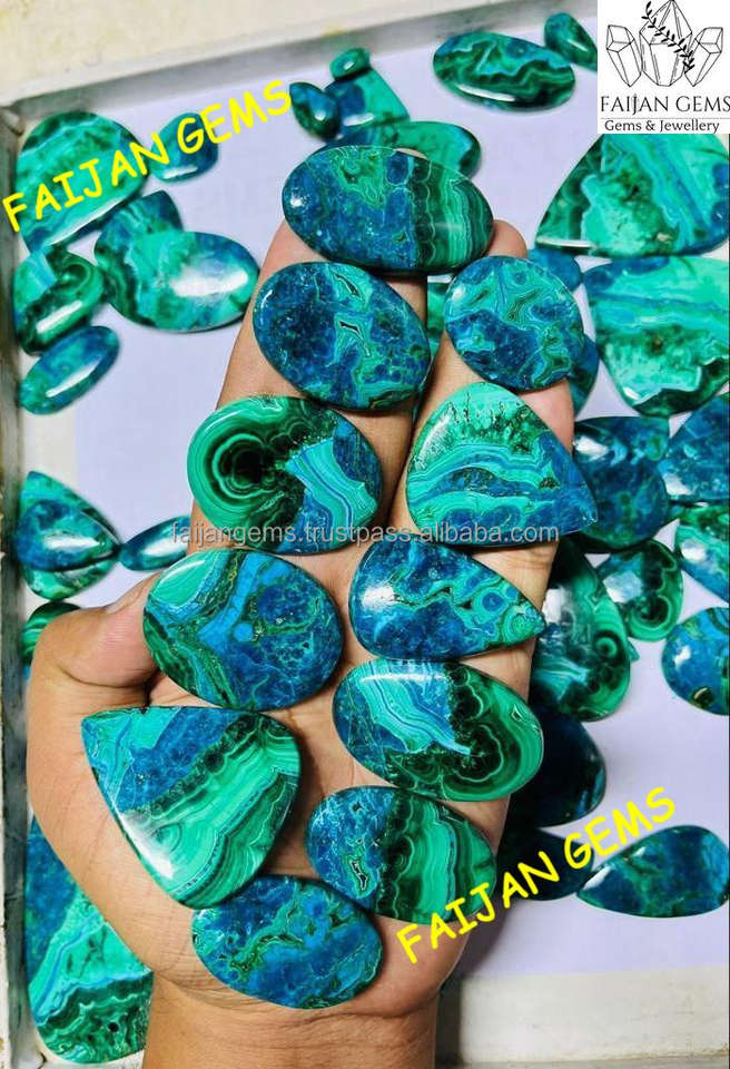 AAA 100% Natural Malachite Shattukite Cabochon Crystal Loose Stone Third Party Certified Customizable Size for Healing Jewelry