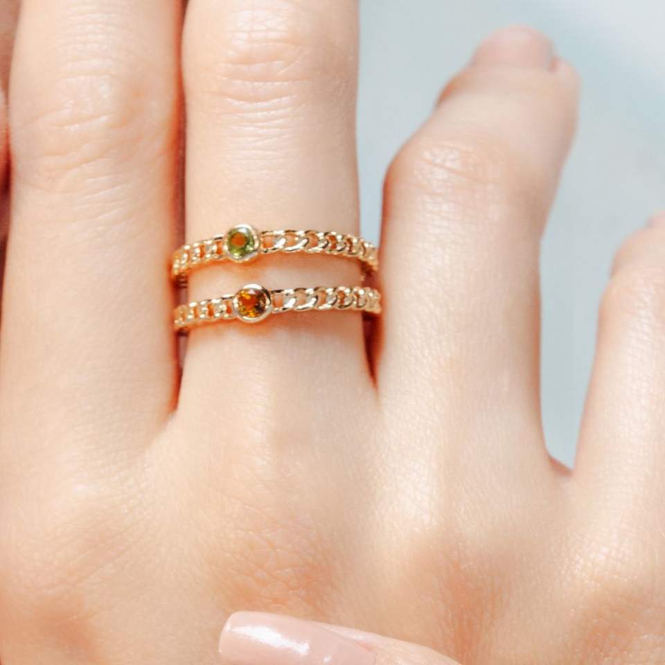 100% Authentic Luxury Natural Cut Peridot Stack Ring 14k Solid Yellow Gold Bezel Setting August Birthstone Jewelry for Parties