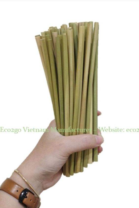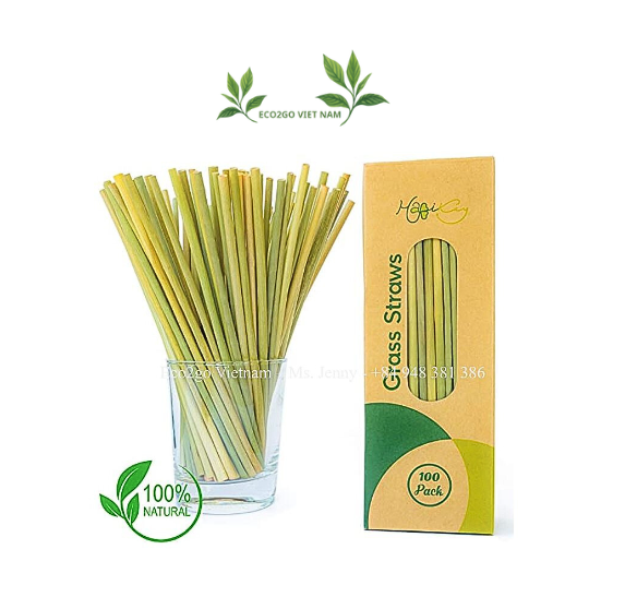 100% Biodegradable and Natural Grass Straws/ Bamboo Straws Drinking Set Custom Natural Made in Eco2go Vietnam
