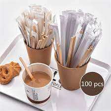 100% Birch Wood Stirrer for Coffee & Tea Long Flat Stick Type with Customizable Logo Design
