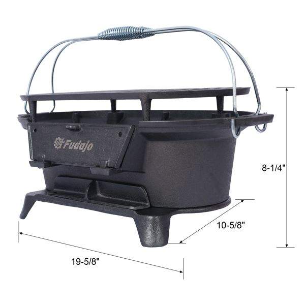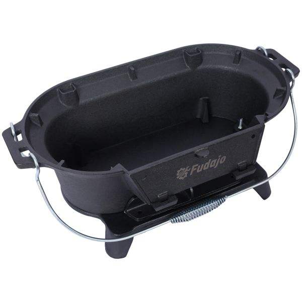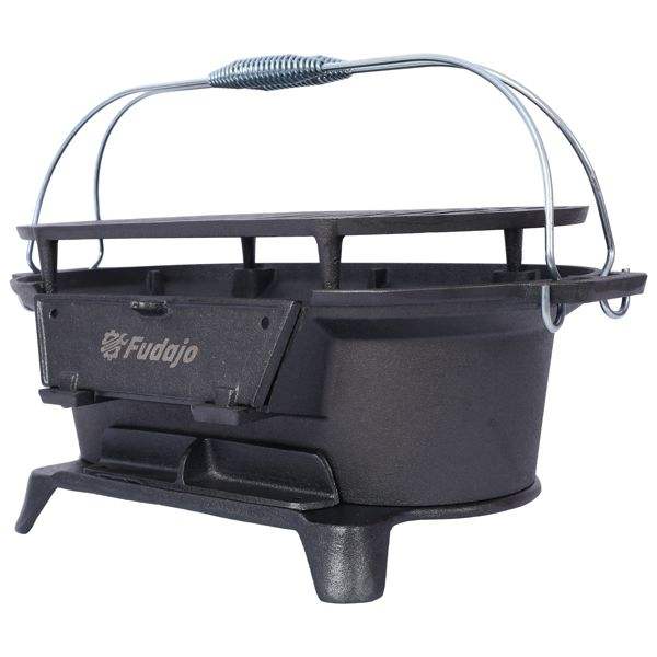 100% Cast Iron Enameled Small Outdoor Portable Charcoal Grill Tabletop Oval Cast Iron Skillet Durable Hibachi Grill Camping