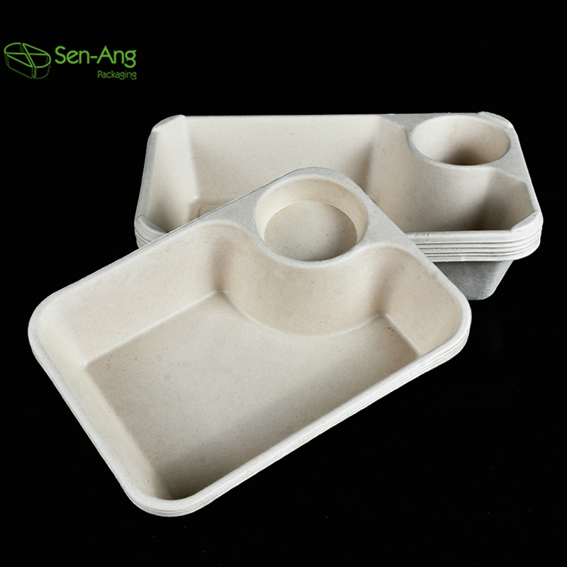 100% Compostable Disposable Lunch Food Tray with 5 Compartments Sugarcane Bagasse Plates Made From Paper and Bamboo