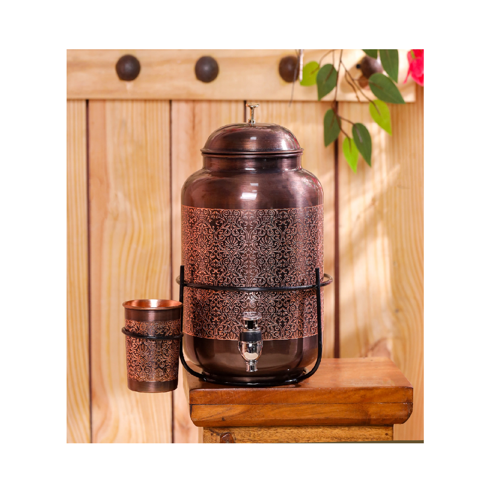 100% Copper Premium Water Cooler With Stand For Camping And Picnic Heathy Drinking Water Dispenser & Pot