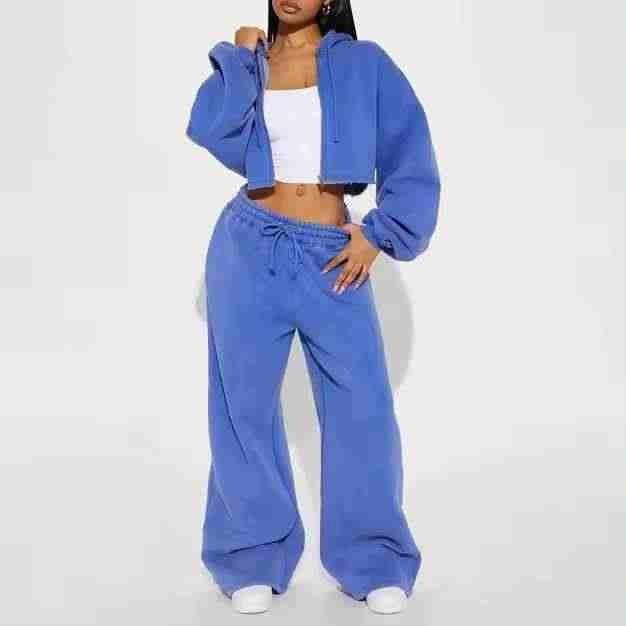 100% Cotton Acid Wash Zip Sweat Suits Distress Patch Hoodies fashion top Flared Tracksuit for Women Hot Selling BY BS 2026