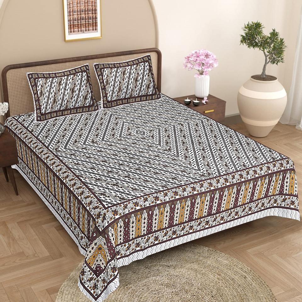 100% Cotton Bedding Set with Pillow Cases King Size Premium Cotton Printed Bedsheet Cotton Double Bedsheet with 2 Pillow Cover