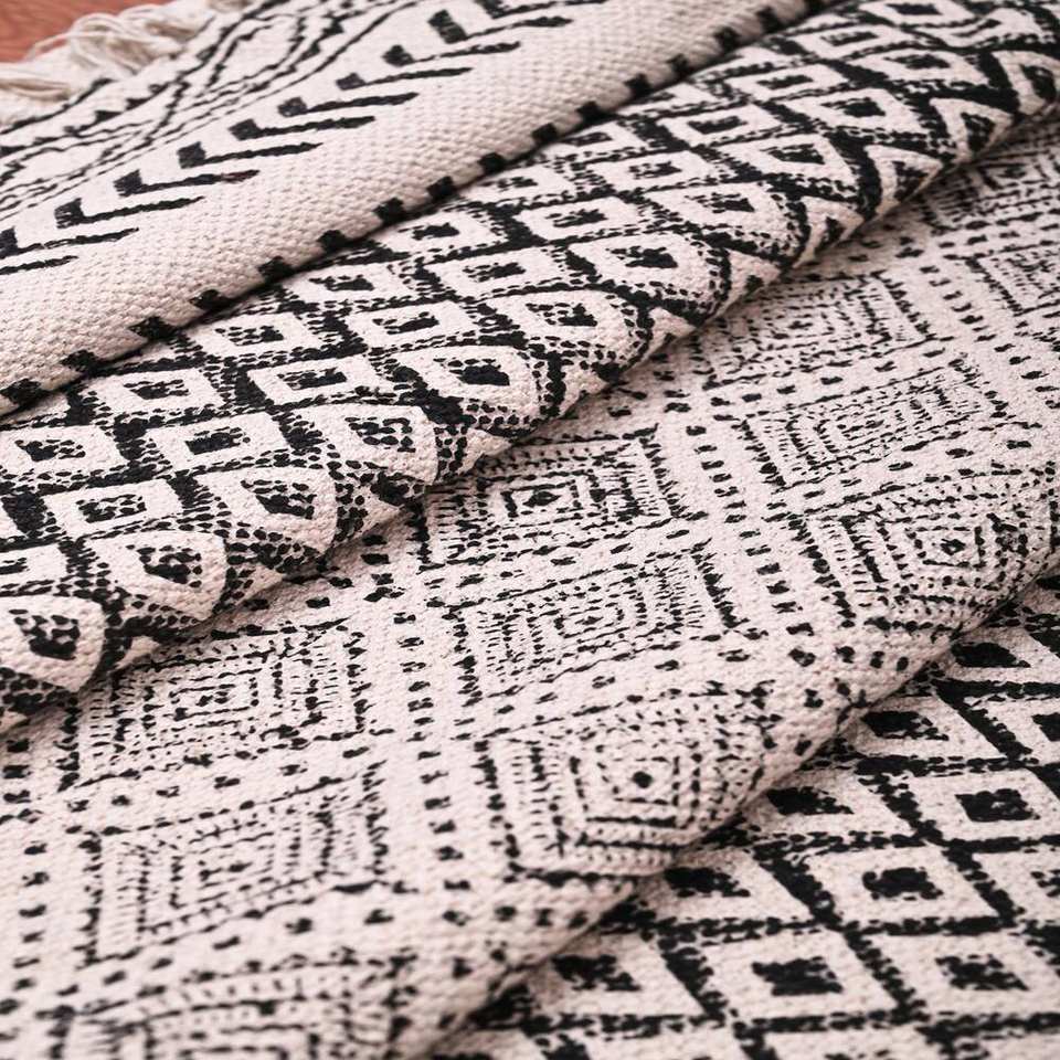 100% Cotton Black and White Designer Carpets Hand Block Print Pattern Rugs for Home Living Room Decor for Car Use